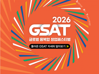 경남 최대 스타트업 박람회가 찾아옵니다! GSAT 2026글로벌 융복합 창업페스티벌4. 29. (수) - 30. (목)창원컨벤션센터 (CECO)✨ COMING SOON GSAT!GSAT2026 주요 프로그램· 공식행사· 콘퍼런스· 전시행사· G-Pitch· 투자자 밋업· 오픈이노베이션· 네트워킹 파티· YOUTH 스타트업 캠프· 문화행사· 체험행사· 투어 프로그램· JOB미래를 여는 혁신의 현장에GSAT 2026과 함께하세요!