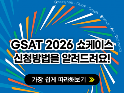 GSAT 2026 쇼케이스신청방법을 알려드려요!GSAT2026 쇼케이스란?참가 스타트업의 노하우와신기술, 연구성과를 직접 체험해보며스타트업 트렌드와 생태계 변화를한눈에 볼 수 있는 GSAT2026의핵심적인 메인 전시관이에요!✨ GSAT2026 쇼케이스 참가하고투자자 밋업과 오픈이노베이션까지!다양한 성장의 기회를 잡고 싶다면?GSAT2026 쇼케이스 신청방법1️⃣ GSAT2026공식 홈페이지 회원가입2️⃣ 메뉴 클릭 ▶EXHIBITION 클릭 ▶쇼케이스 참가 신청 클릭3️⃣ 쇼케이스 온라인 참가 신청서류 작성 및 제출4️⃣ 참여 확정 및 부스 배정5️⃣ 디자인 공유모집기간1. 19.(월) ~ 3. 10.(화)참가신청비무료 !무료제공기업 전시부스, 안내데스크,홍보백월, 의자Break the limit,Open the World한계를 깨고 세계를 여는GSAT2026 쇼케이스에서경남 스타트업의무한한 가능성을 만나보세요!4. 29.(수) - 30.(목)창원컨벤션센터(CECO)